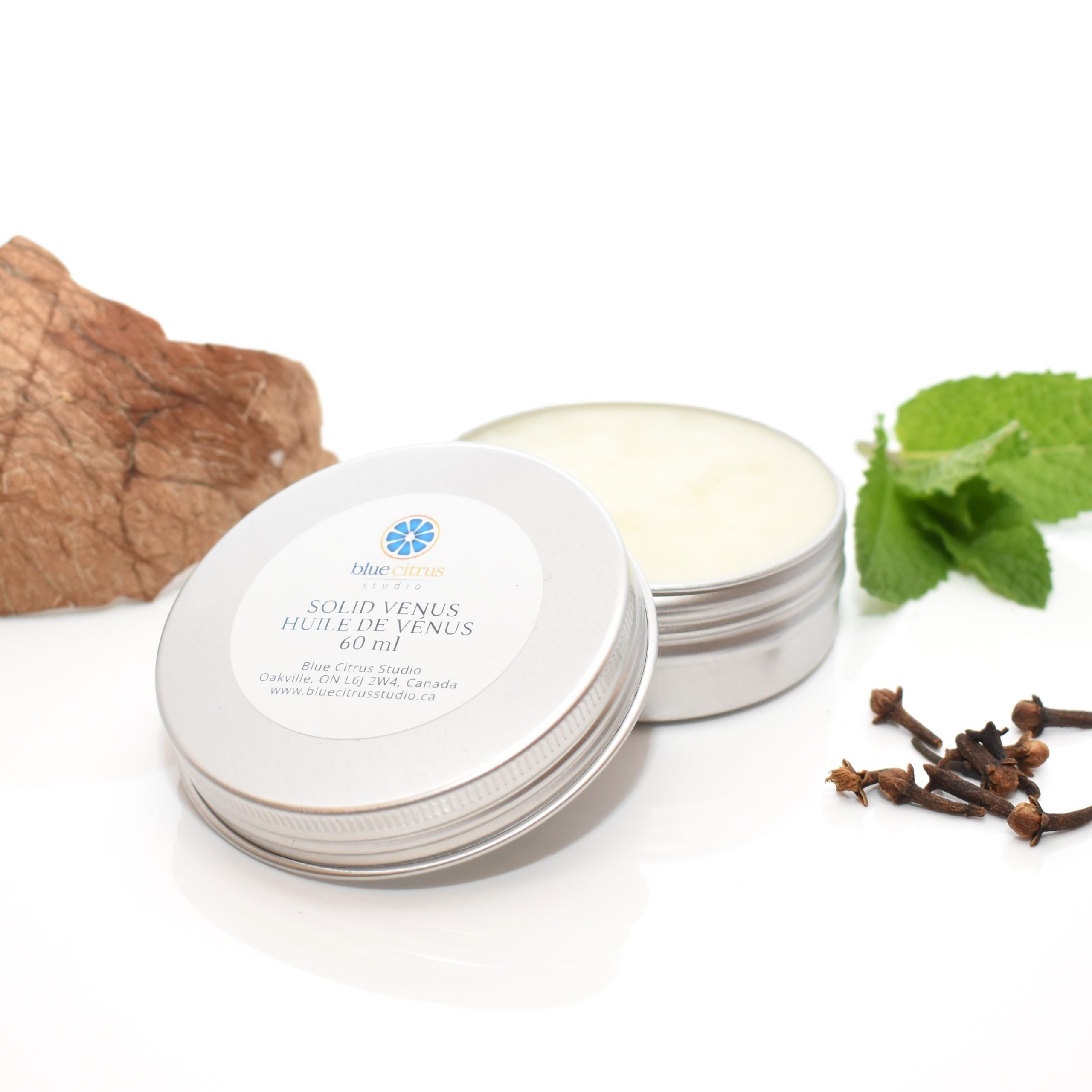 Coconut oil, Jojoba oil, Tea Tree, Peppermint, Melissa, Roman Chamomile, Clove